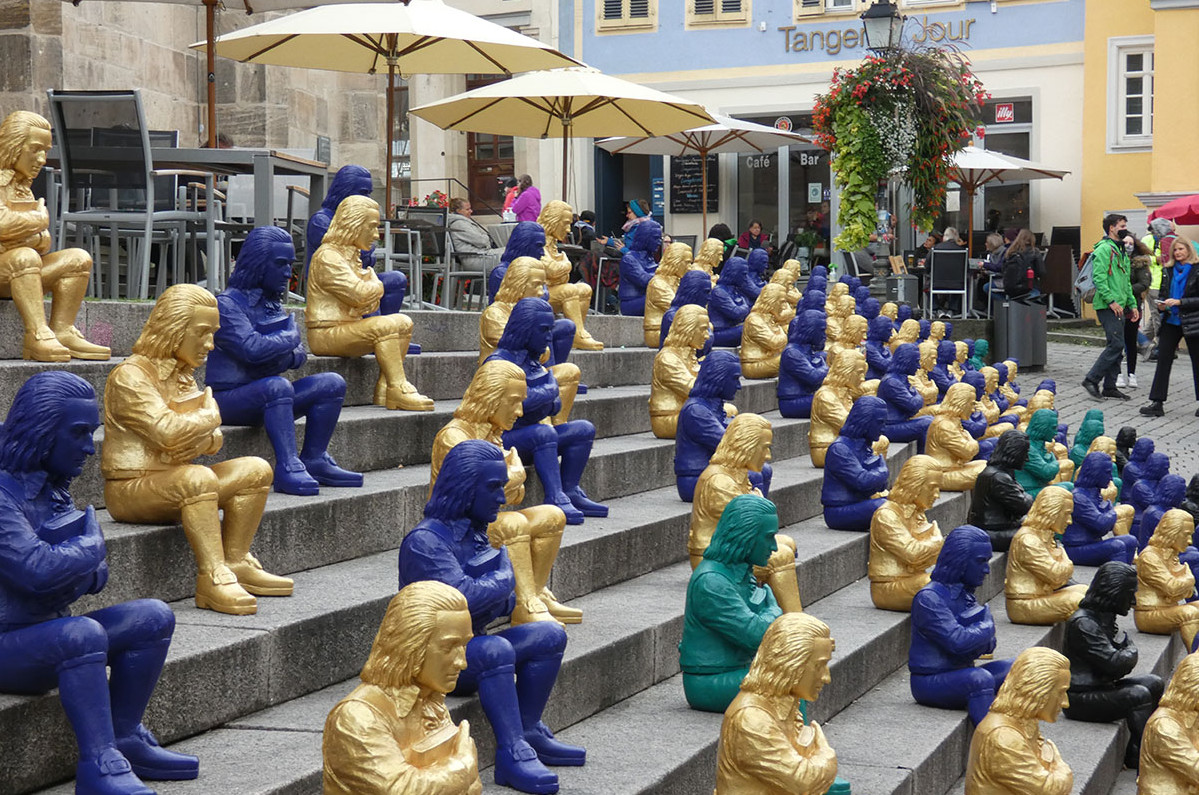 Meanwhile in Tübingen an army of Hölderlin clones gathered in 2020 on the banks of the Neckar and elsewhere about the town. As an act of adulation it seemed a bit hyperbolic, but nonetheless good fun if not understood as an act of lunatic idolatry.