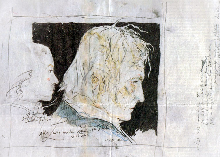 Horst Jannsen – Hölderlin Ages 16 and 72. Scanned from a German newspaper several years ago.